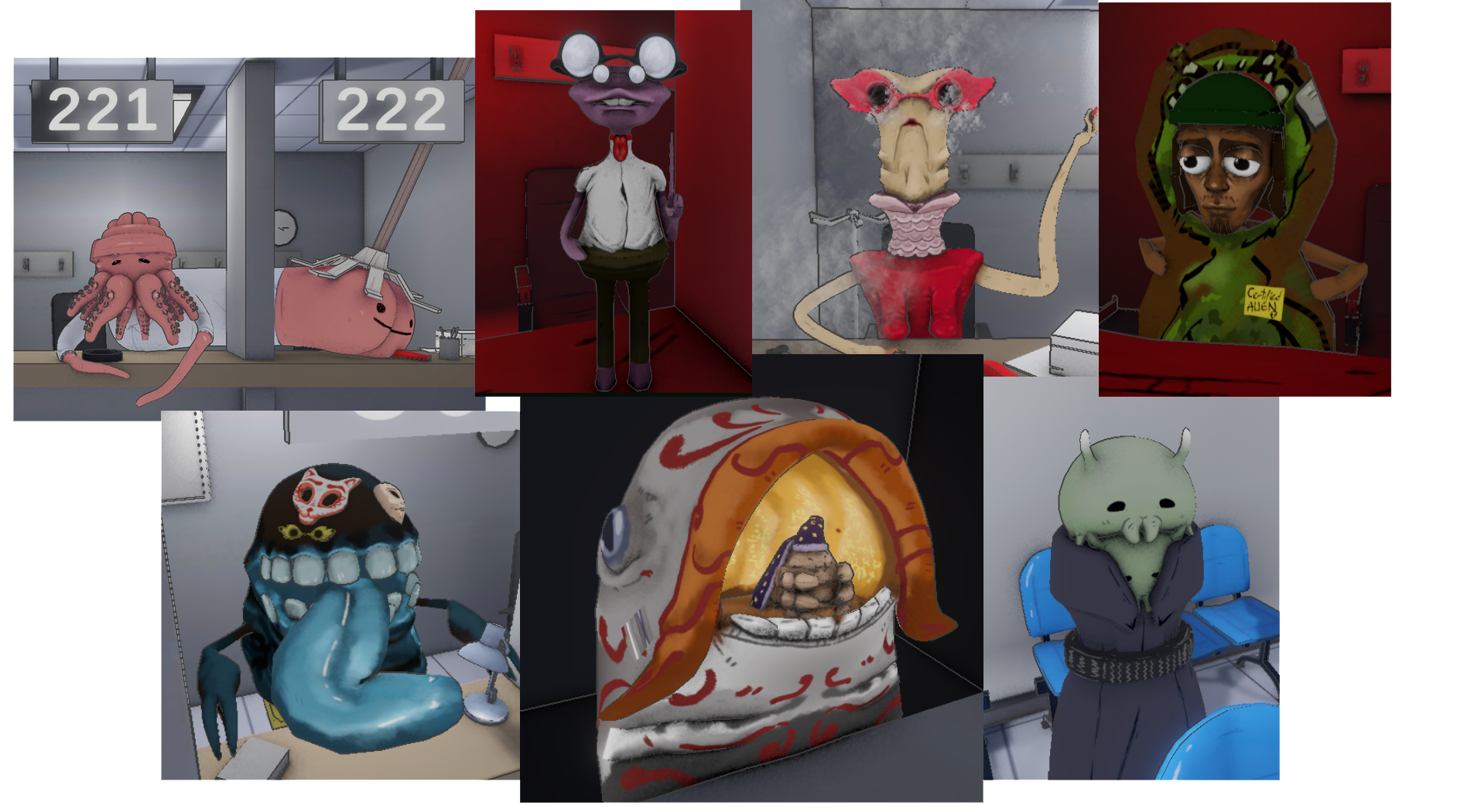Funcionarios - En cada uno de los 6 pisos de la oficina habrá uno o más funcionarios alienígenas con los que interactuar. Cada uno con un propósito y papeleo que te obligarán a rellenar.